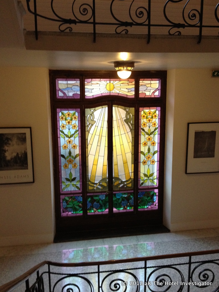 Montreux | Suisse Majestic Published April 15, 2013 at 768 × 1024 in On the Swiss Riviera, a historic property attempts to balance past and present Main staircase Colorful period stained glass windows adorn the hotel’s staircase.