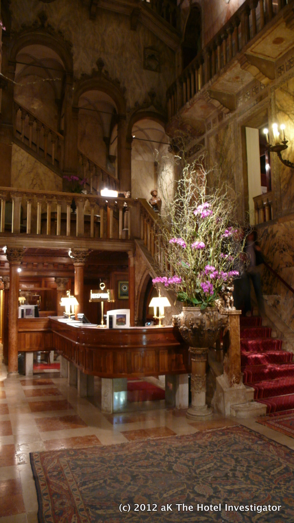 Venice | Danieli Published April 22, 2013 at 576 × 1024 in From George Sand to James Bond Reception The quintessence and beauty of Venetian palazzi is concentrated in the hotel’s lobby with its beautiful main staircase, all of which is further enhanced by the verticality of the space that was an open courtyard originally.