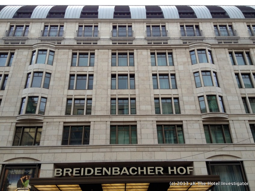 In the 1990s, the ‘postwar’ Breidenbacher Hof of 1950 was demolished completely and replaced by an entire new construction that bears very little historic resemblance to the earlier hotel, save for the stone cladding of the facade. The hotel’s porte cochère features a monumental, almost over-dimensional awning which sets the tone for the hotel’s lavish and ostentatious interiors.