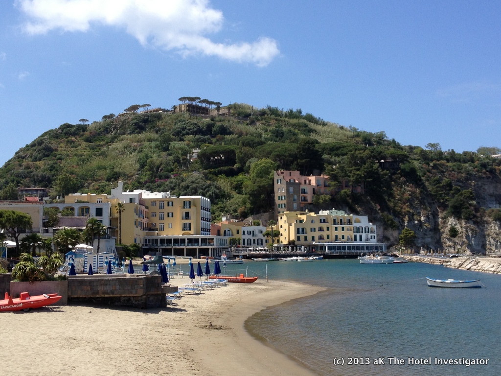 With Monte Vico as a backdrop, the hotel’s distinct building wings are easily recognizable: the main ‘Regina Isabella’ building (middle left), the ‘Sporting'(bottom right), the exclusive ‘Royal'(upper right) and the connecting ‘Belvedere’ (middle center).