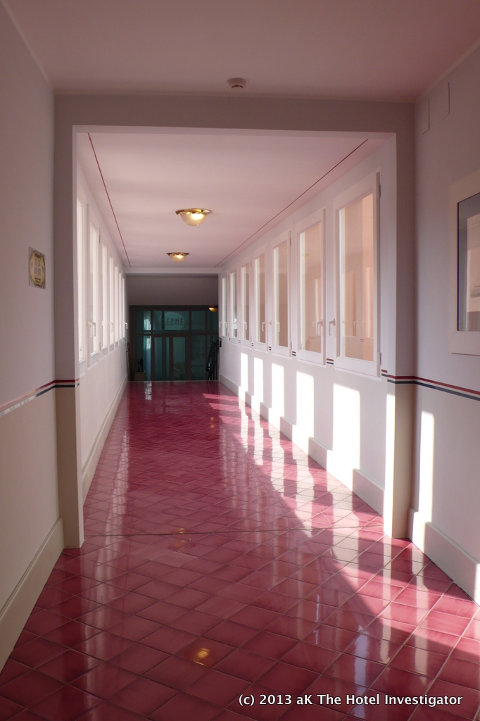 Lacco Ameno (Ischia) | Regina Isabella Published July 8, 2013 at 682 × 1024 in L’Albergo della Regina Isabella Interior footbridge to spa Magenta colored floor tiles leed the way from the second floor of the ‘Regina Isabella’ building to the ‘Terme’, the historic spa that gave the hotel its name.