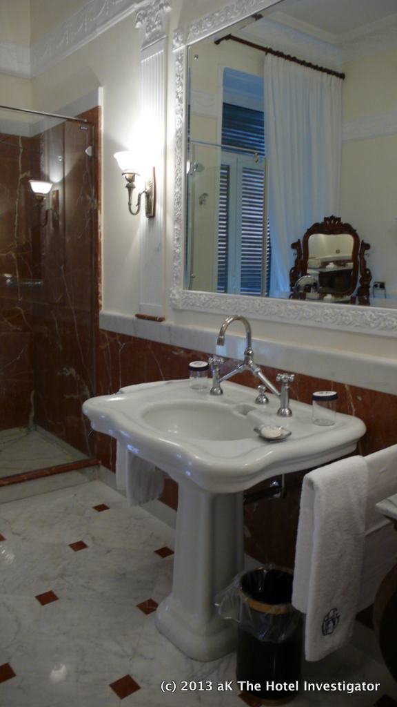 Sorrento | Excelsior Vittoria Published July 29, 2013 at 576 × 1024 in Splendid Isolation and a View to Die For Suite bathroom Although they were mostly not part of the original layout, many bathrooms were carefully retrofitted with fixtures that match the turn-of-the-century ambiance of the hotel.